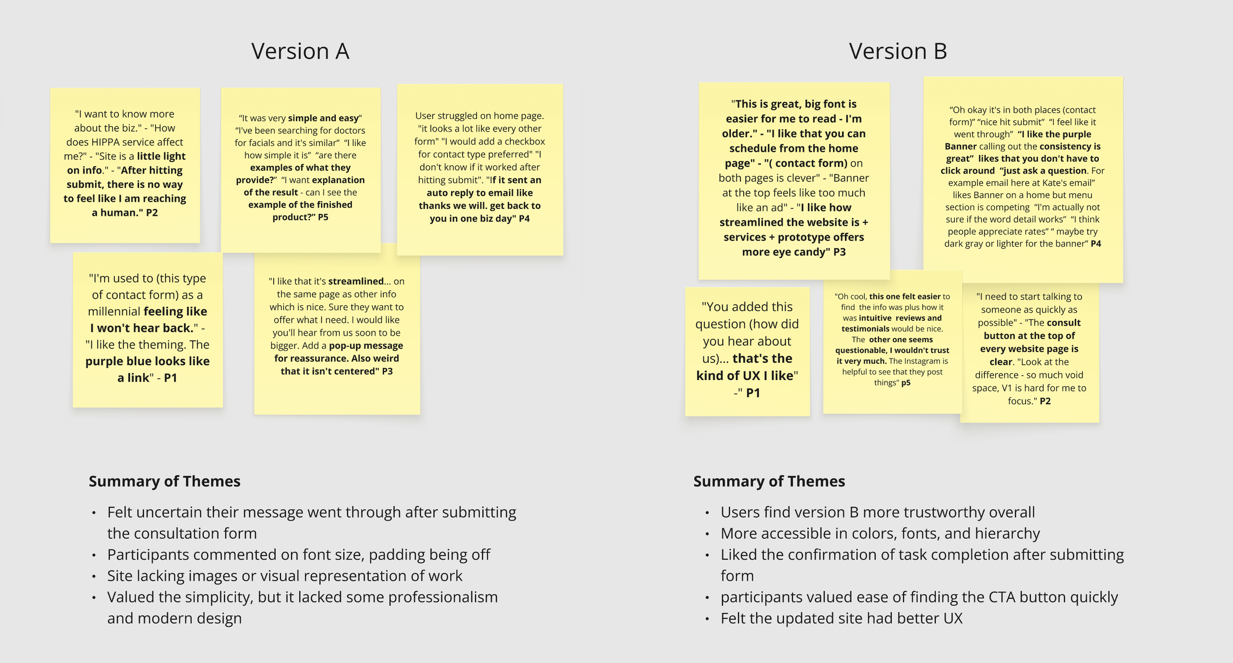 A/B testing showed that users felt more confident in Version B, describing it as more trustworthy, established, and credible.