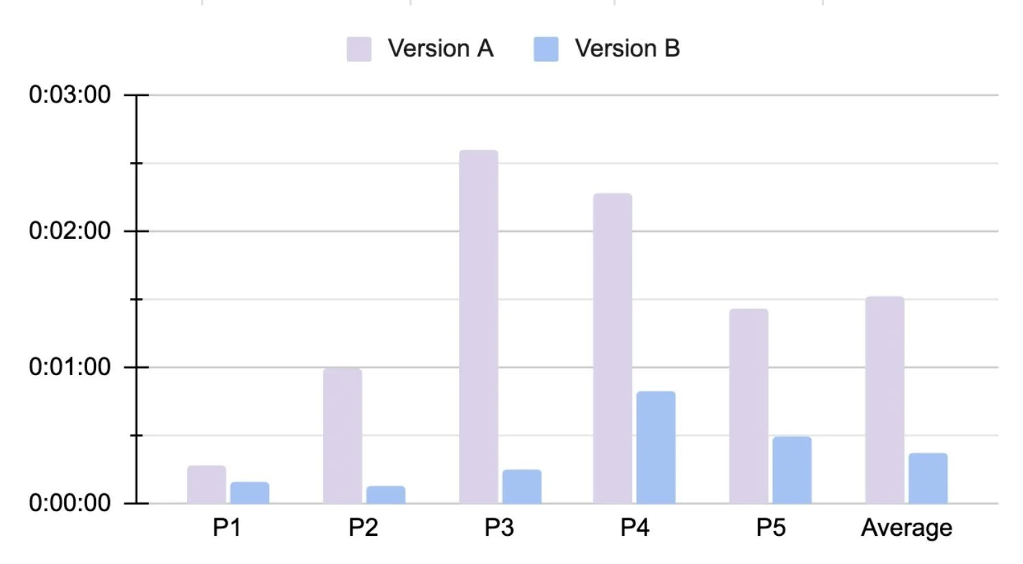 Average of Version A was 00:02:28s, average of Version B task time cut down to 00:01:30s