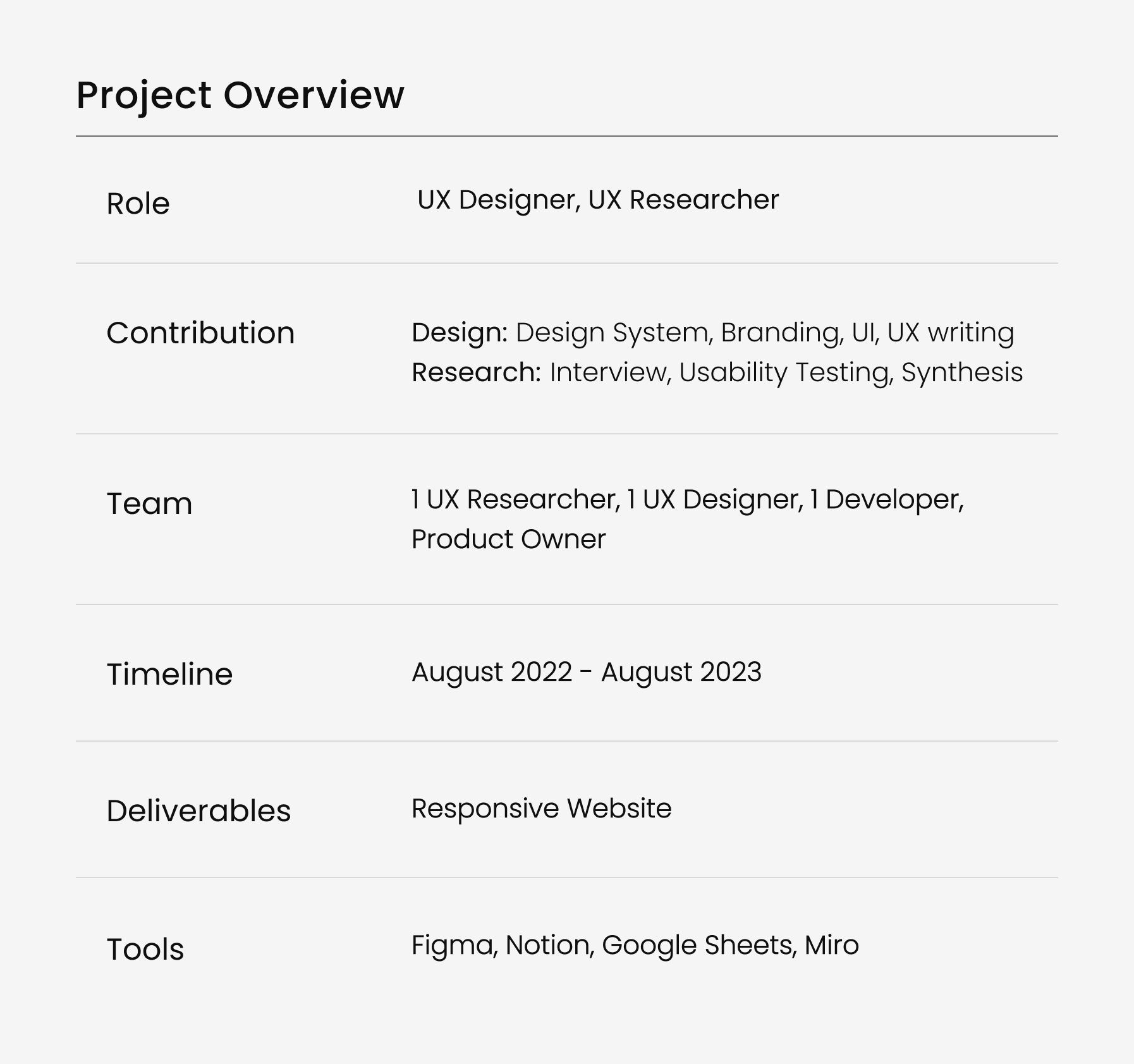 Solution: Reworked typography hierarchy and spacing to improve readability and content prioritization.