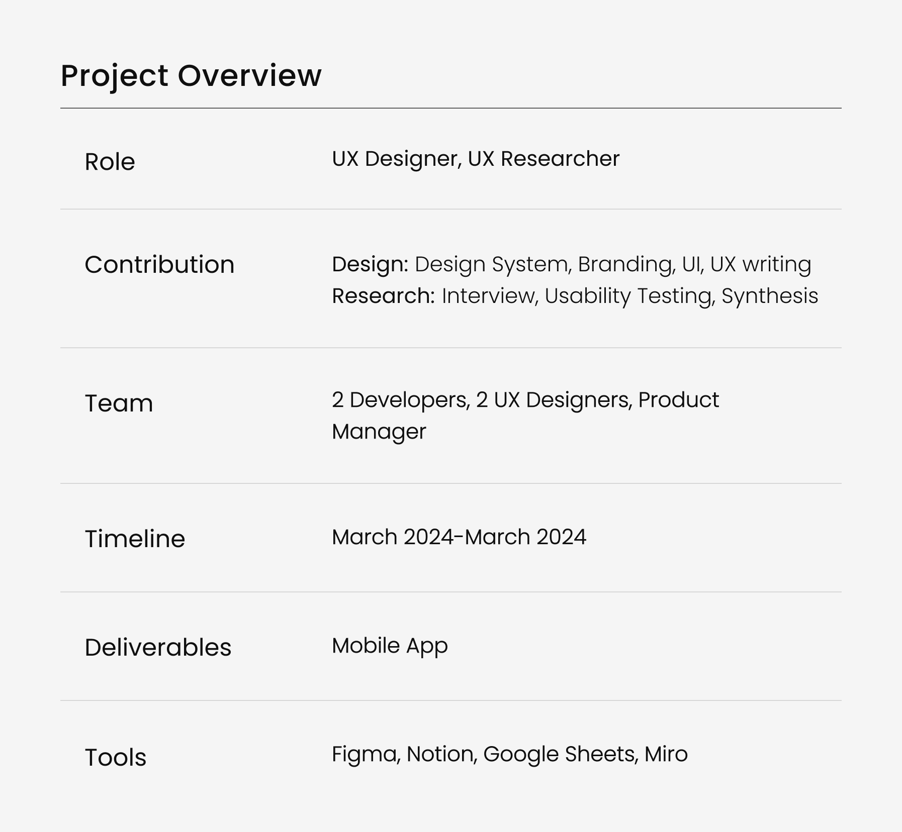 Given the compressed timeline, I conducted usability testing with a single user, yielding focused feedback that helped validate core flows and guide final adjustments.